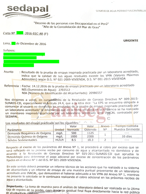 No te preocupes, llámanos inmediatamente luego de recibir la notificación para realizar la revisión de procedimiento de manejo de aguas residuales y la infraestructura con la que cuentas, a fin de realizar las recomendaciones y la implementación de mejoras para evitar la afectación de multas por exceso de valores.